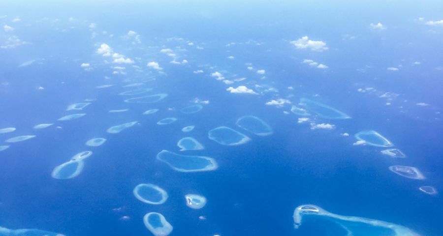 Малдивският архипелаг се състои от 26 атола, обединяващи 1190 коралови острова, които са на територия от 90 000 квадратни километра, което прави Малдивите една от най-разкъсаните и разпръснати на голяма територия държави в света.