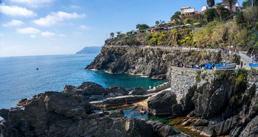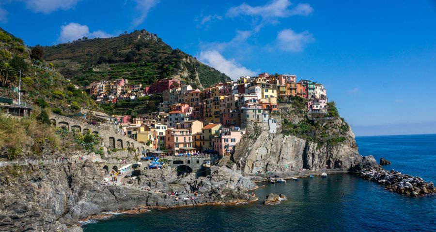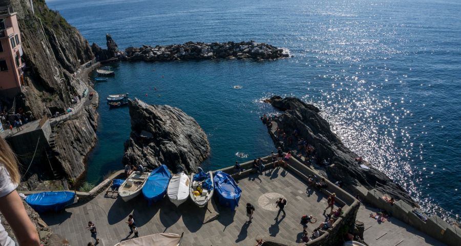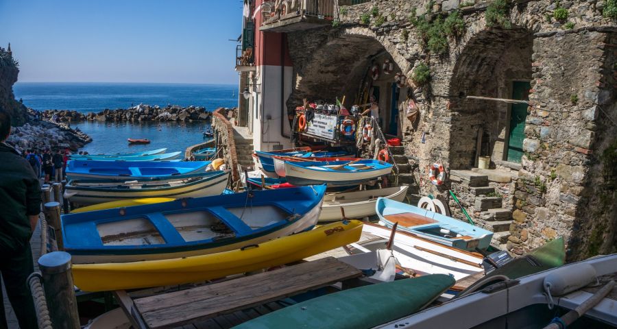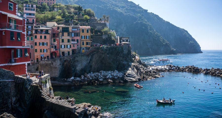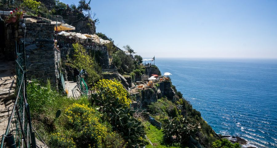 До 1960г. единственият достъп до тези приказни села е бил морето или стръмни магарешки пътеки по склоновете. После е изградена жп линия, която почти през целия път минава през тунели. Дори и някои от гарите са в тунел. Коли в тези села няма, това е резерват и трябва да се пази. Атмосферата по улиците е неповторима - лодки вместо паркирани коли, безброй ресторантчета и кафенета (а какви аромати се носят…), висящи рибарски мрежи и много цветя – пъстри, свежи, просто великолепни, само за снимка. Не - за мнооого снимки! Следобед улиците като че ли заспиват, само местни пенсионери седят лениво под сенките на къщите и наблюдават улиците или разговарят. Селата са заобиколени от терасирани с къртовски труд склонове с портокалови и маслинови горички и лозя – типичен пейзаж за този район на Италия. Тук се произвежда специфично бяло вино, като гроздето се суши 40 дни на проветриво място преди да се използва. 5-те села Монтеросо ал маре (Monterosso al Mare), Вернаца (Vernazza), Корнилия (Corniglia), Манарола (Manarola) и Риомаджоре (Riomaggiore) са свързани и с пешеходни маршрути. Пътеките минават над морето, през автентични ферми, селски къщи и маслинови гори. Но най-красиво и впечатляващо е да се видят от морето. Пристанища няма, лодките и корабчетата спират до скалите, спуска се една дъска и с дружни усилия хората слизат и се качват. При лошо време това е невъзможно и единственият достъп е по жп линията. Но стига приказки. Вижте нашата галерия и преценете сами дали си струва да се посетят тези места.