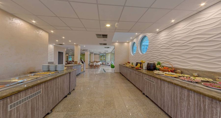 Хотелът разполага с ресторант с две зали с общо 180 места и тераса към ресторанта с 30 места, лоби бар, който е на разположение на гостите ни 24 часа, басейн бар с различни видове коктейли, външен басейн с дължина 30 м. и ширина 10м.