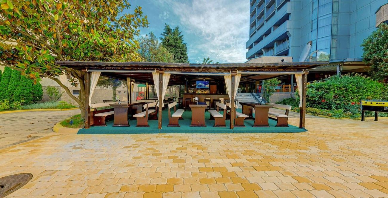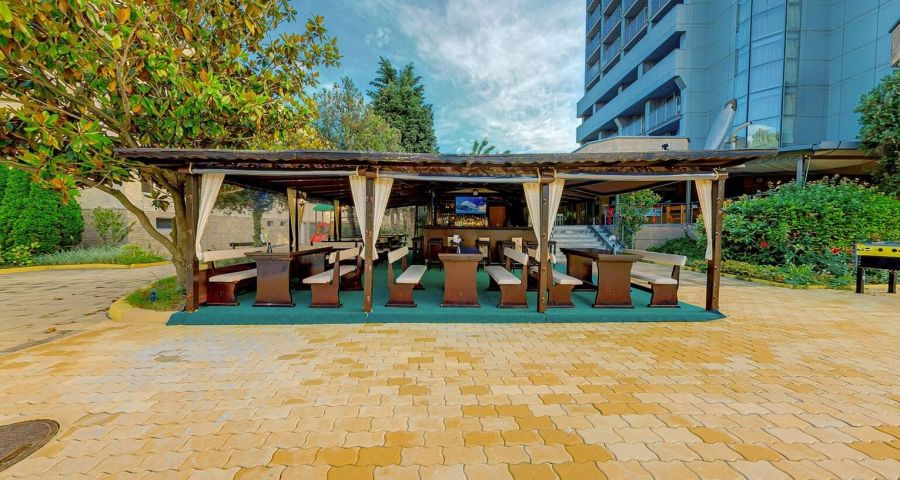 Oсновна сграда, реновирана сграда, рецепция, 2 външни басейни, детска площадка, конферентна зала, Wi-Fi в общите части, паркинг
