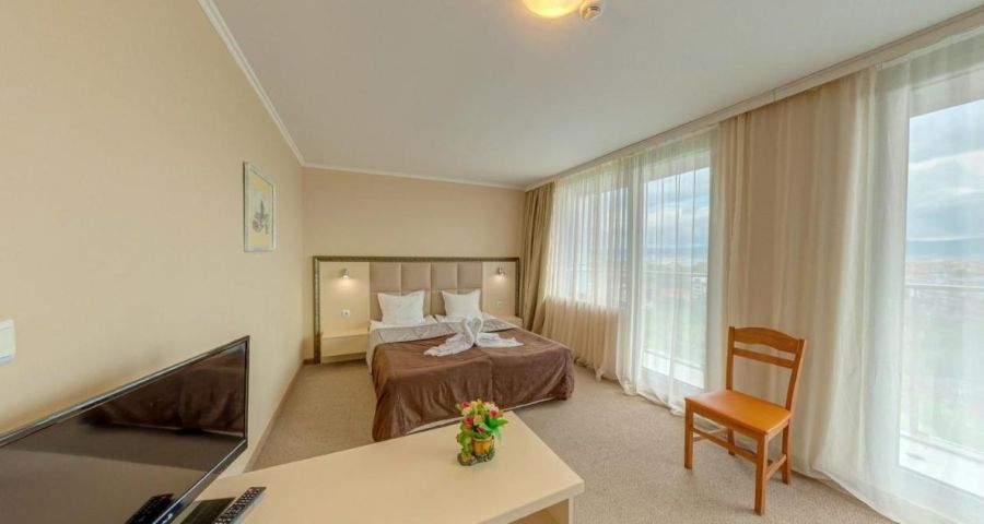 балкон, климатизация и вентилация, TV с кабелна телевизия, хладилник, баня, тоалетна, душ, сешоар, хладилник, телефон.