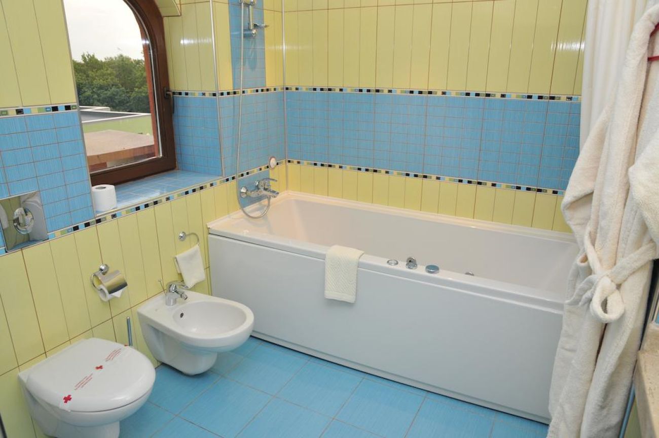 Климатик, хладилник, сателитна телевизия, телефон, баня с вана, балкон