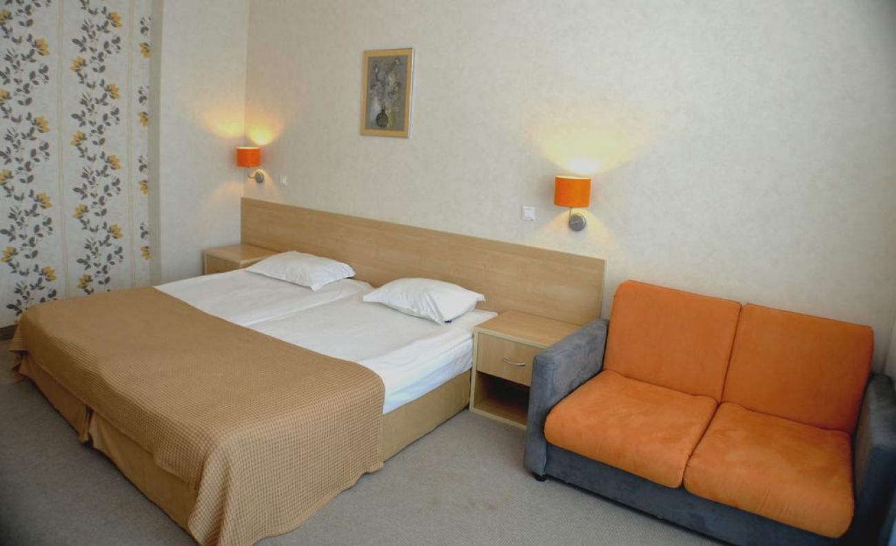 климатик, мокет, мини бар, телефон, кабелна телевизия, сешоар, интернет