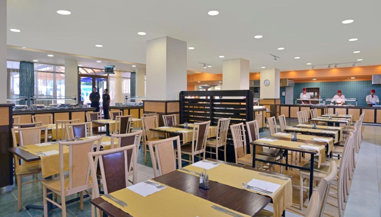 Гостите могат да избират между международни и български ястия в основния ресторант (напълно реновиран през 2023 г.), испанска кухня в Paellador Levante (отворен от първата половина на юни до началото на септември), италианския ресторант Osteria del Golfo (отворен от първата половина на юни до средата на септември), суши и морски дарове в Umi Japanese Corners (отворен от юни до края на август), испански тапас и коктейли в Taperia Malecon (отворен от първата половина на юни до средата на септември), и бирена градина Biergarten (отворена от първата половина на юни до първата половина на септември). Бар Embarcadero (отворен от юни до средата на септември) е с уникално местоположение на крайбрежните тераси и предлага сандвичи „панини“, освежаващи коктейли и безалкохолни напитки. Гостите могат да посетят новия китайски ресторант Hot Pot и новия бургер бар.