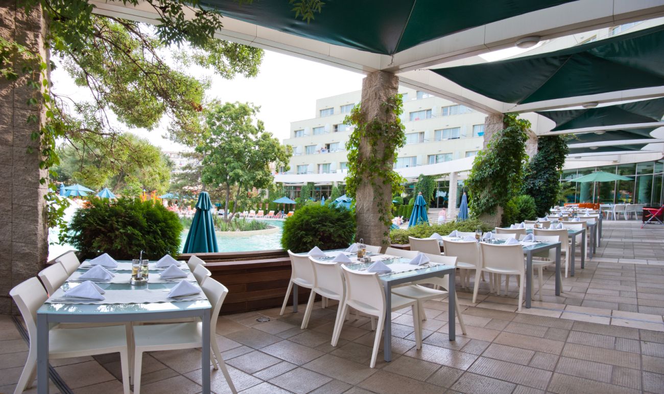 Ресторант с външна тераса, лоби-бар, бар на басейна.