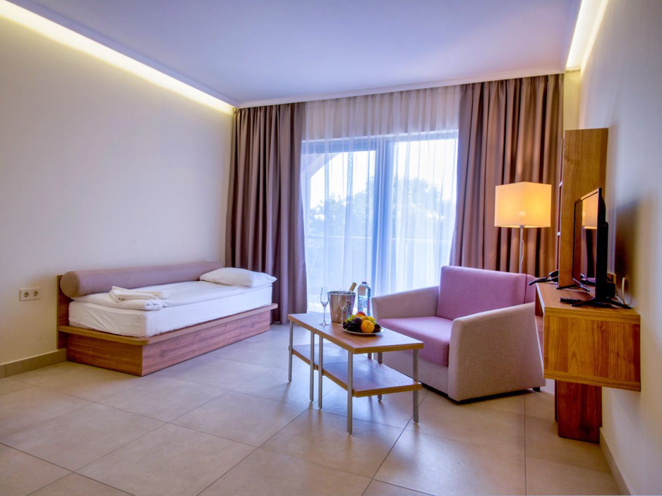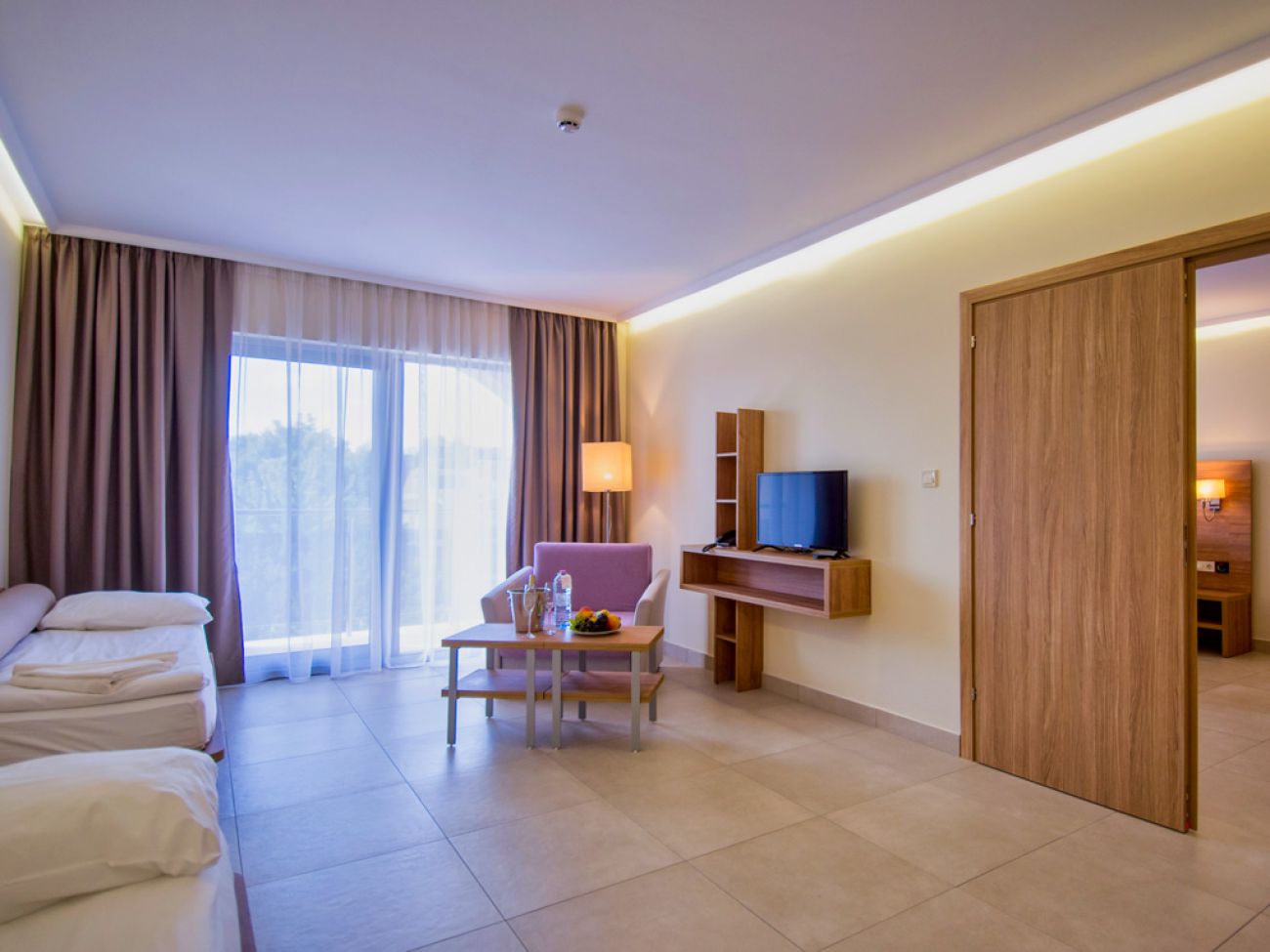 Климатизираните и комфортни стаи Супериор с балкон и санитарен възел (душ, WC, сешоар, телефон) са оборудвани със сателитна телевизия, телефон, Wi-Fi (безплатен), сейф (безплатен), минибар и електрическа кана. Възможност за до две допълнителни легла - разтегателни фотьойли. Максимално настаняване до 4-мавъзрастни.