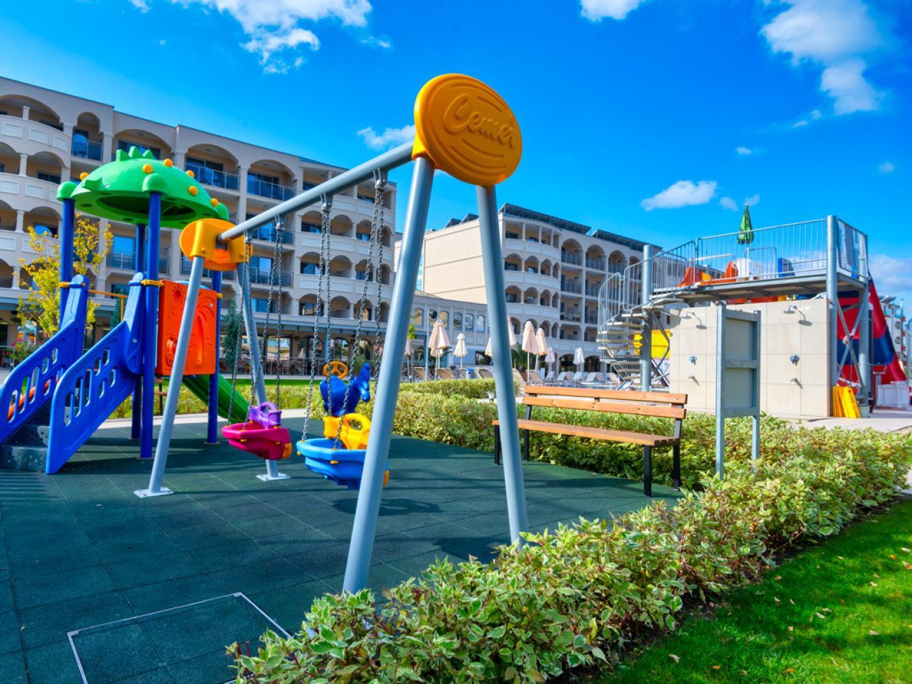 Занимания с деца: детски клуб, площадка за игри, детска вечерна дискотека според програмата - 10:00 - 12:00, 14:45 - 18:00; 20:30 - 22:00.