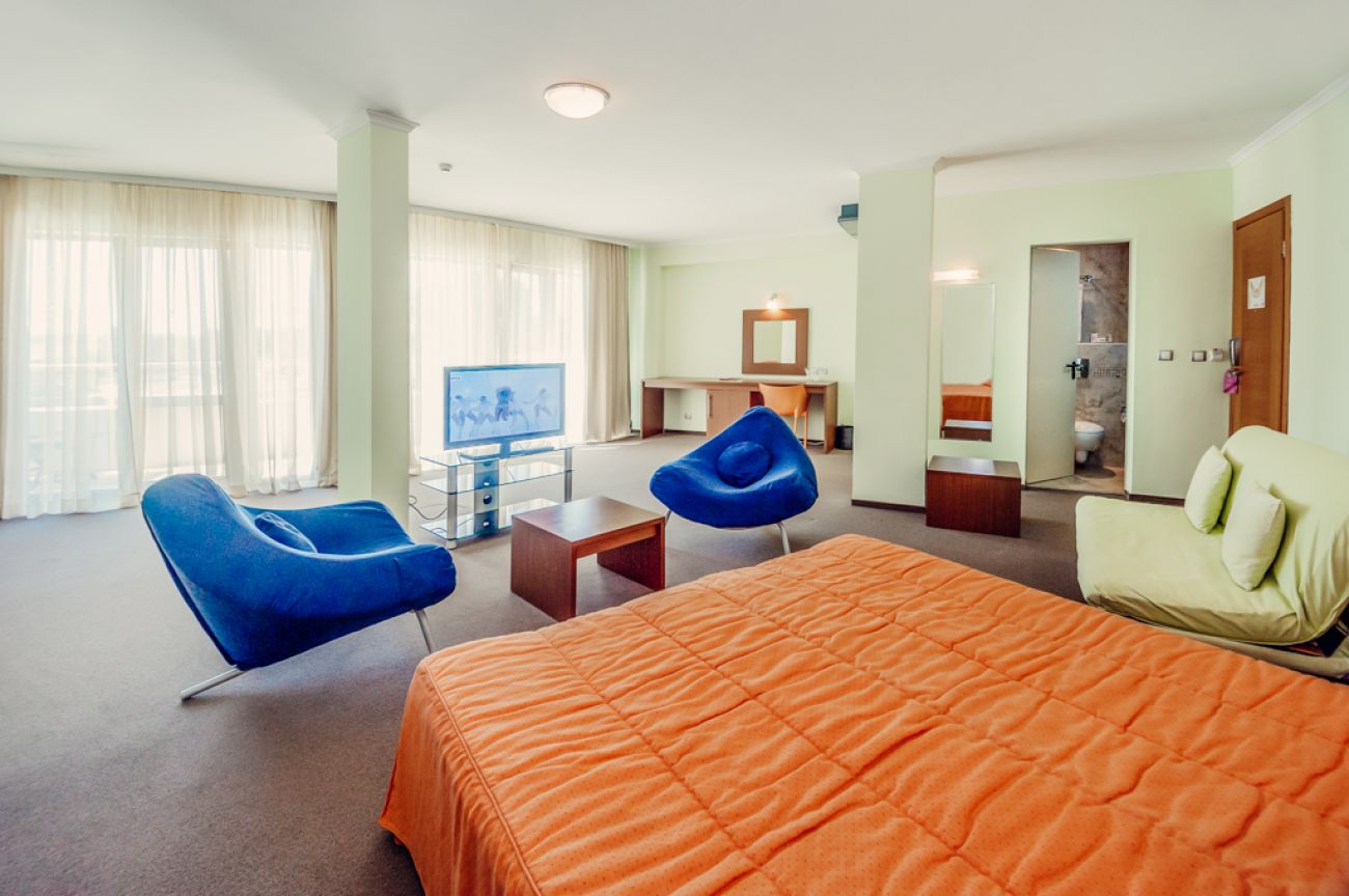 Климатизираните Двойни стаи с балкон и санитарен възел (душ, WC, сешоар, телефон) са оборудвани със сателитна телевизия, телефон, Wi-Fi /безплатен/, сейф /безплатен/, минибар и електрическа кана. Максимален капацитет - до 4-ма възрастни.