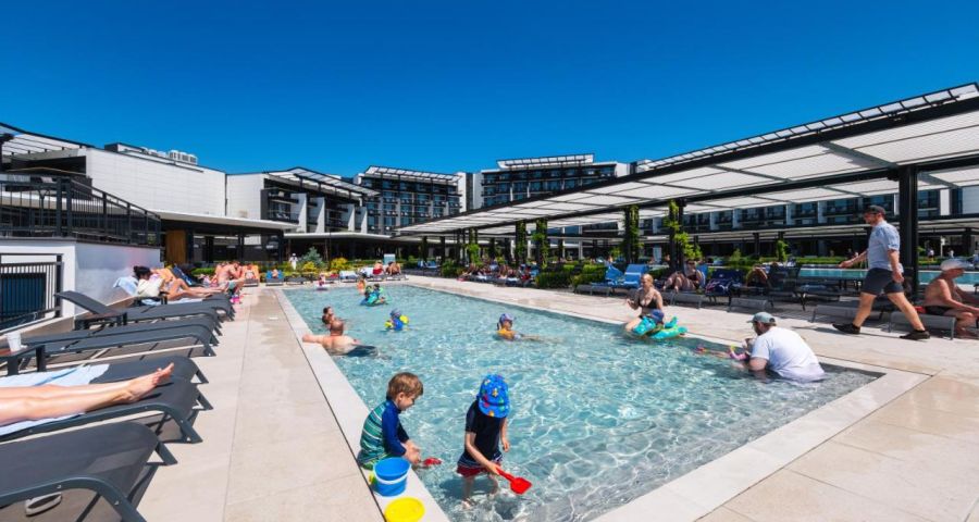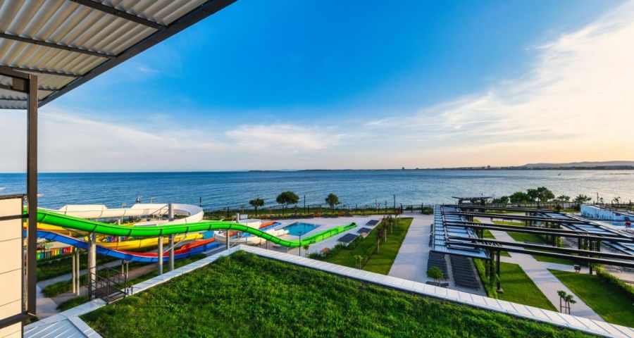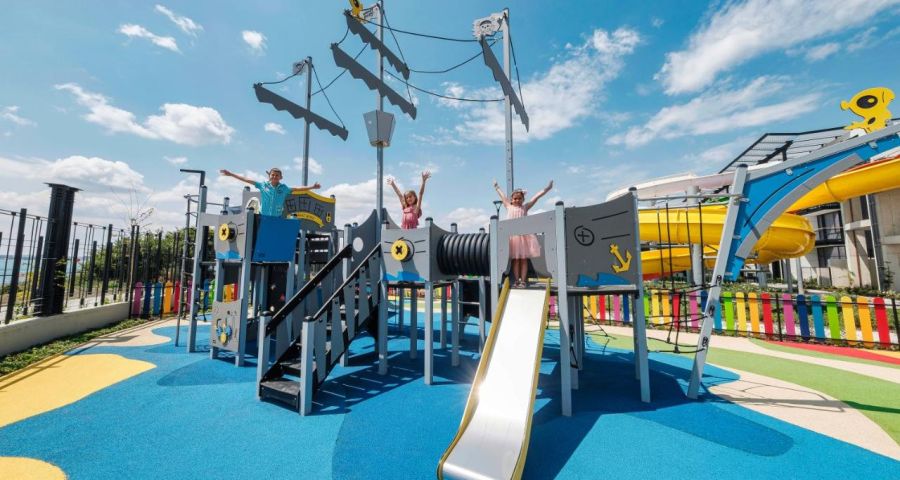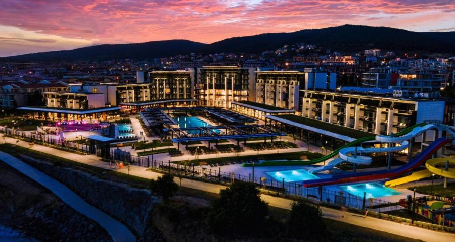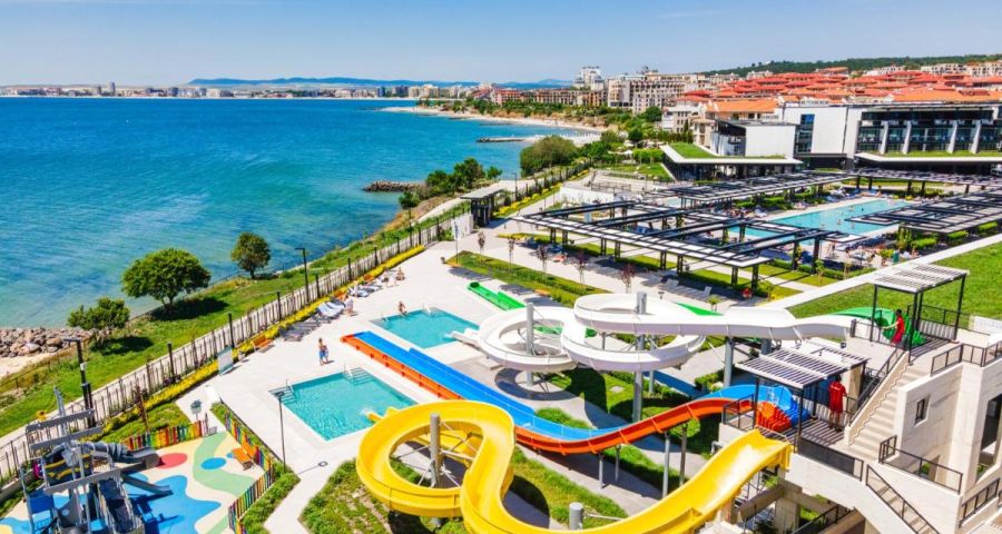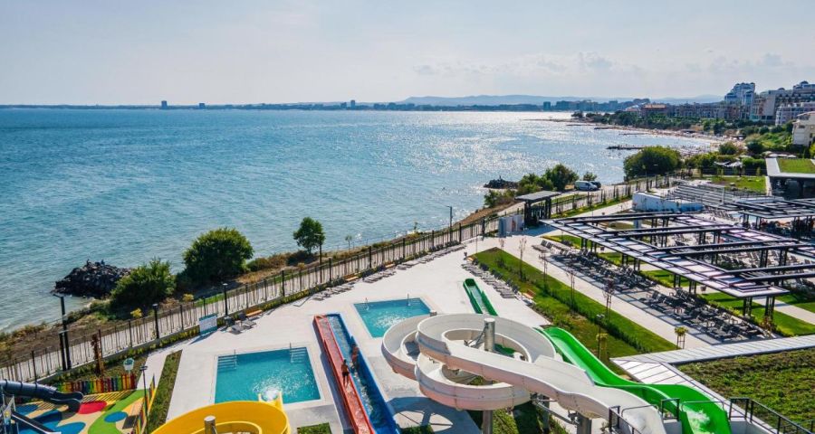 Хотелът разполага с външен басейн и мини аквапарк с 5 водни пързалки за възрастни.