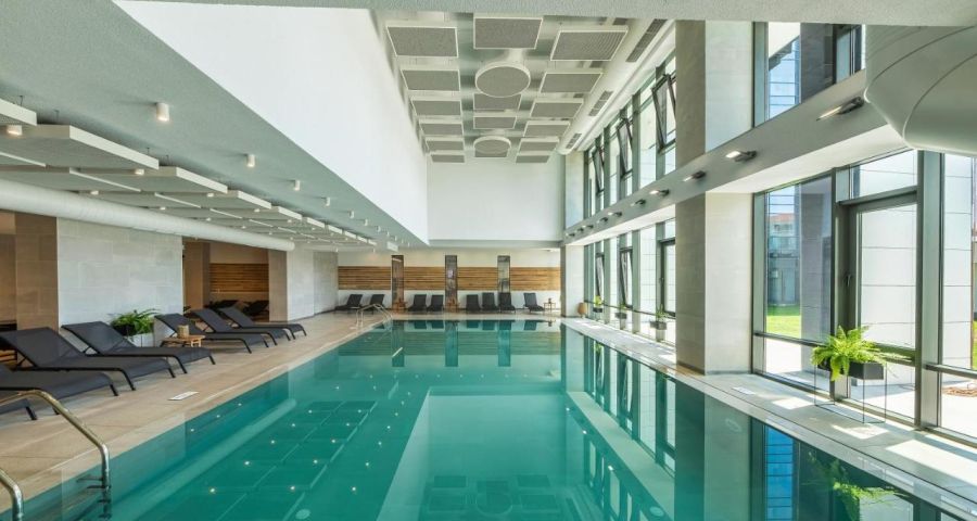 На територията има също така и СПА център с вътрешен басейн, сауна, парна баня и фитнес.
