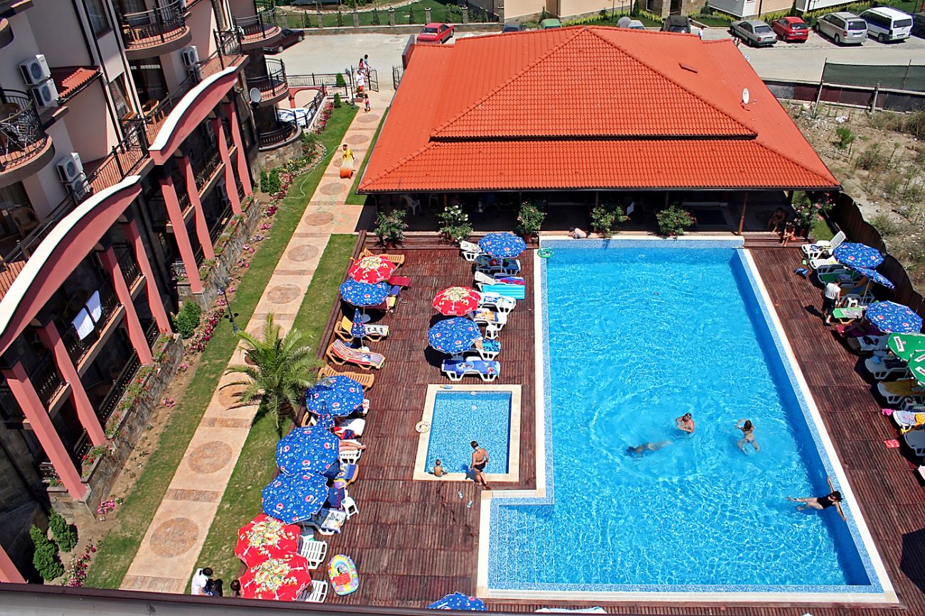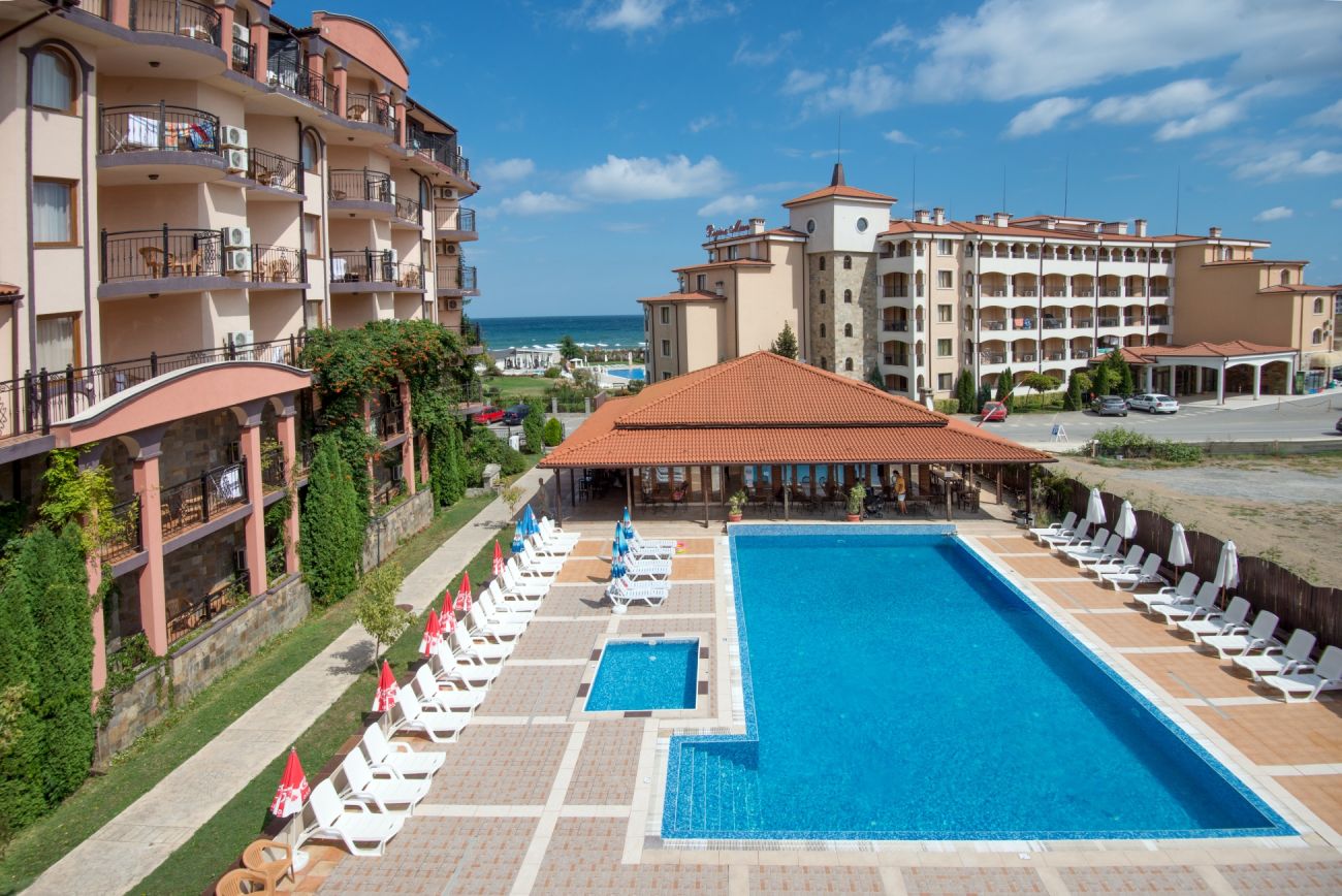 Външен басейн, детски басейн, детска площадка, интернет, конферентна зала, аниматорски програми, паркинг