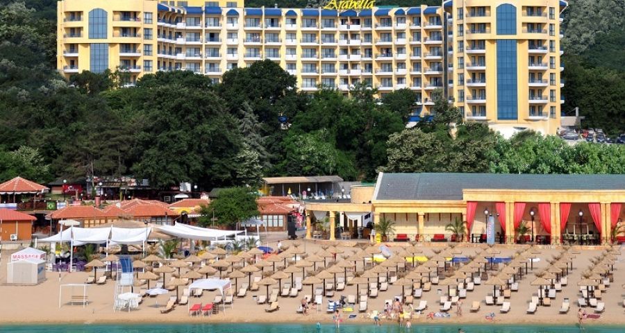 Грифид хотел Арабела е идеалното място за семейна почивка на прекрасното пясъчно крайбрежие на Черно море, в курорта Златни пясъци. Единствено търговската алея го разделя от елегантната плажна ивица. Хотелът се намира на 50 м. от центъра на комплекса, на 50 м. от търговския център, на 50 м. от плажа, на 15 км. от Варна, на 30 км. от летището, на 500 м. от автобусната спирка.