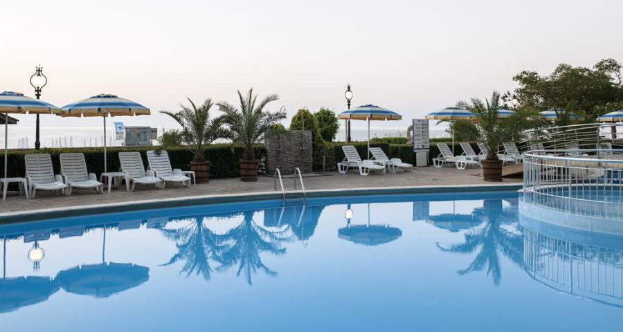 Рецепция, външен басейн, детски външен басейн - интегриран в основния басейн, вътрешен отопляем басейн, детски кът, паркинг