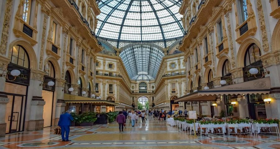 Накрая ще се потопите в магията на галерията Виктор Емануил II - елегантна покрита търговска галерия, наричана "салона на Милано", където историята и луксът се срещат под един покрив от стъкло и желязо.
