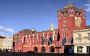 Кметството, изградено от червеникав камък, впечатлява със своята богата украса и внушителна фасада.