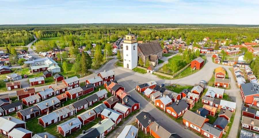 Магията на зимата обгръща всичко – покривите, камбанарията на величествената църква, малките прозорци, зад които някога са светели свещи. Ще усетите пулса на старите времена, ще се потопите в атмосферата на общност, събирала се тук за празници и духовни тържества, и ще почувствате как всяка крачка ви свързва с духа на Северна Швеция.