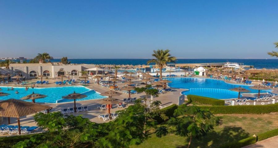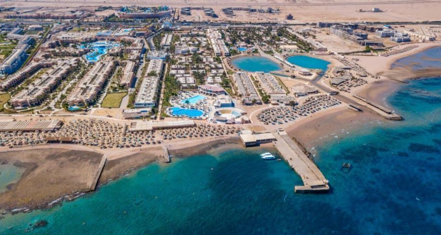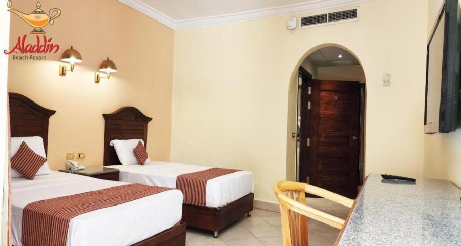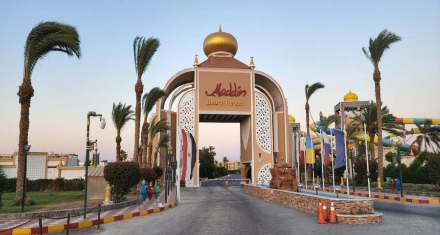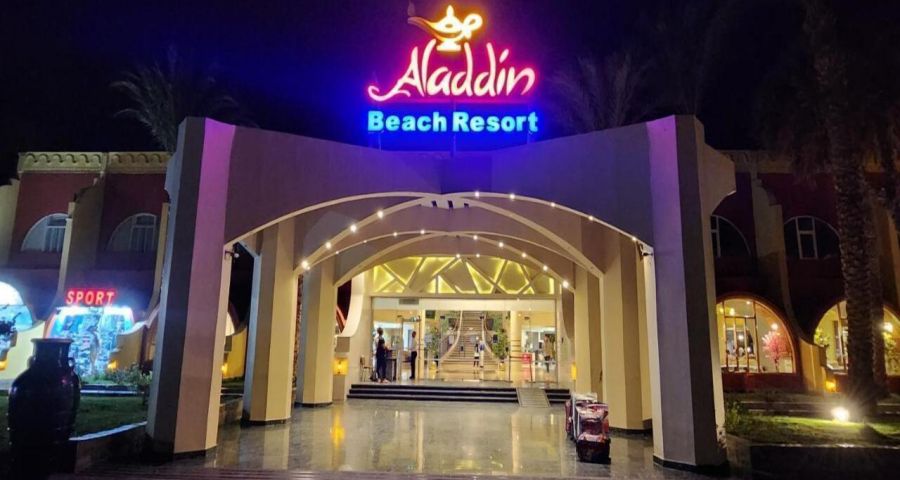 Aladdin Beach Resort 4* се намира на самия бряг на Червено море, в курортната зона на Хургада. Разположен е на около 8–12 км от международното летище и на приблизително 15 км от центъра на града. Хотелът е част от комплекс заедно с съседните Jasmine Village и Ali Baba Palace, с които споделя определени удобства.