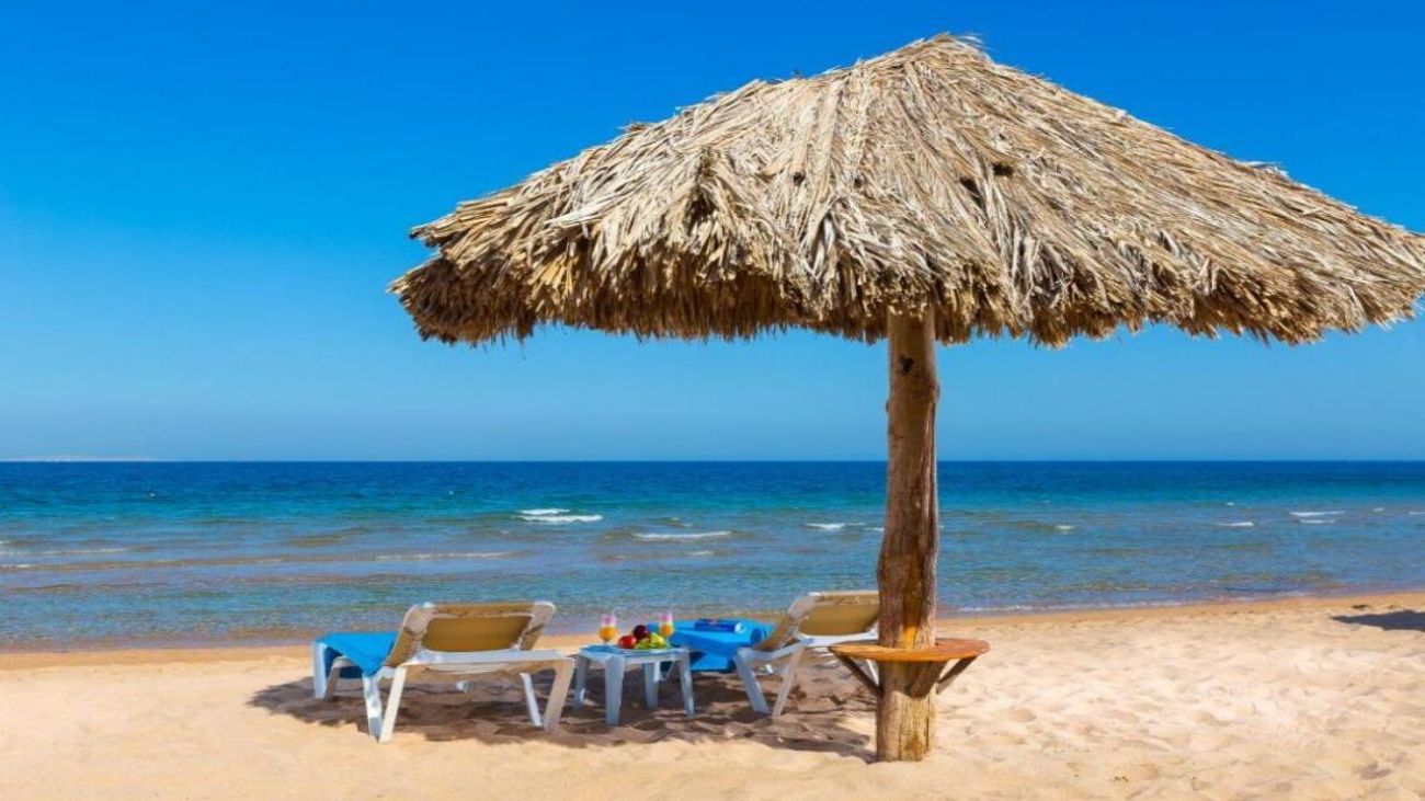 Чадъри, шезлонги и хавлии на плажа и басейна