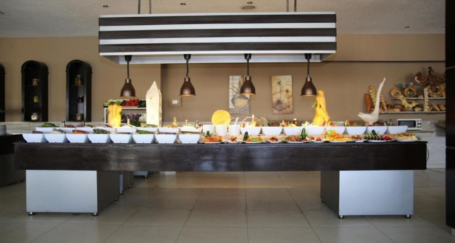 С невероятна гледка към морето и басейна, плажният ресторант предлага тематичен обяд и вечеря на шведска маса.
