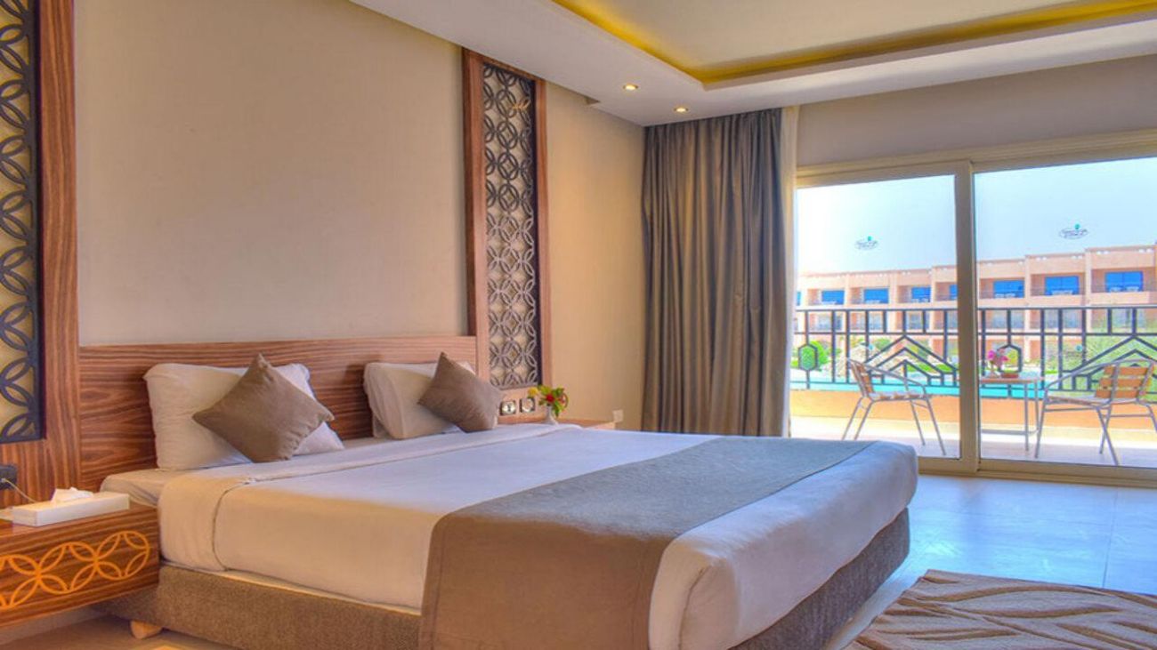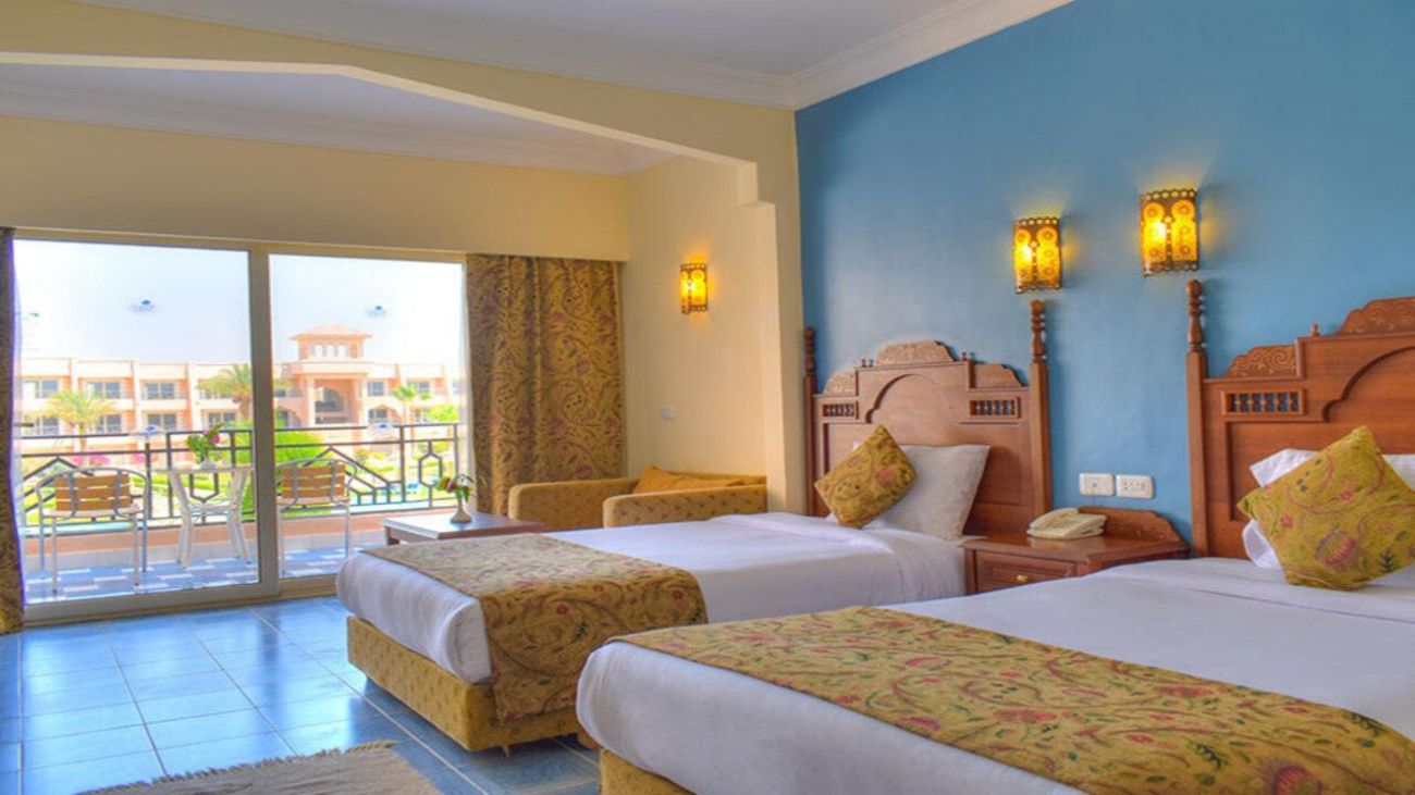 Построен в арабски стил, с модерно обзаведени стаи, разполага със собствен частен пясъчен плаж. Ползването на чадъри и шезлонги е безплатно.