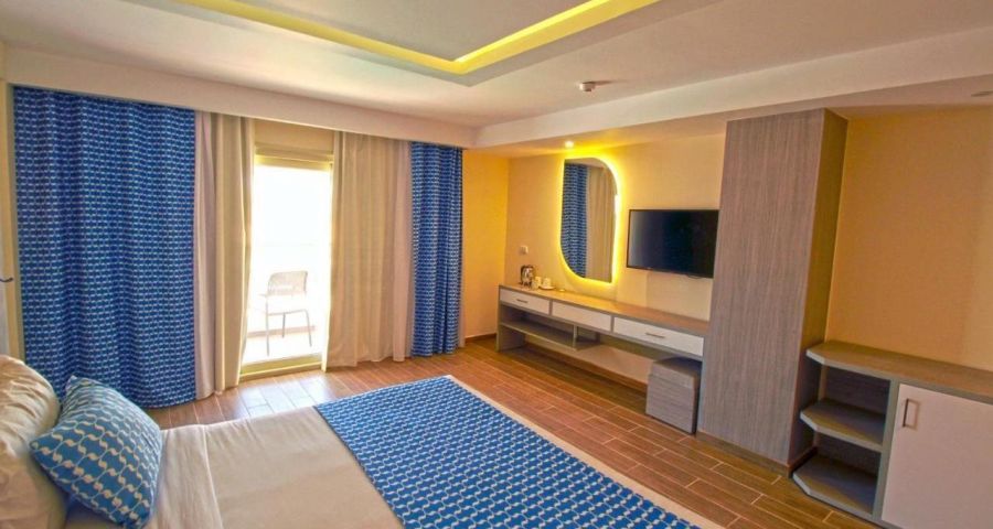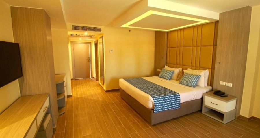 Приблизителна площ на стаята - около 28-32 кв.м. Разполага с телефон, сателитна телевизия, сешоар, сейф, мини бар - срещу допълнително заплащане, електрическа кана с чай и кафе, климатик, баня с тоалетна, балкон или тераса.