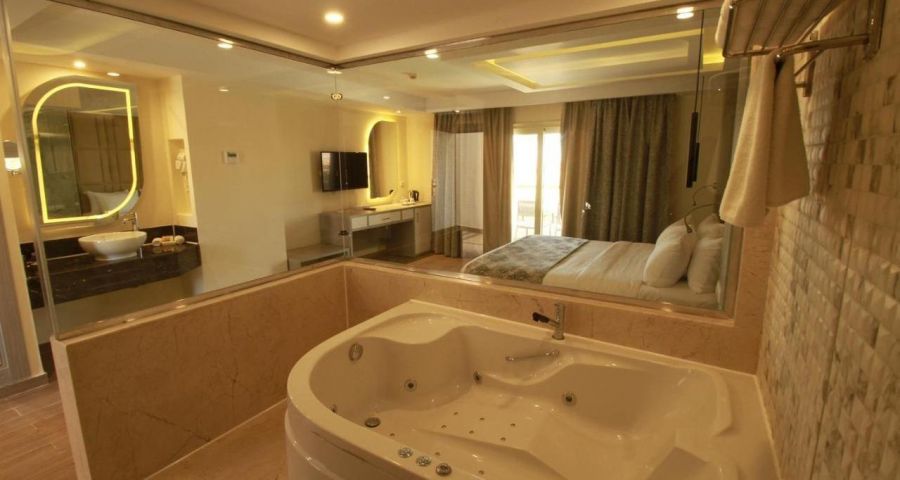 Bellagio Resort and Spa е адаптиран от стандартен тип хотел в луксозен стил стаи, фамилни стаи и специално проектирани апартаменти - всички с уникална гледка към морето, а някои се намират и между водите на Червено море. Внедрявайки най-съвременните хотелски технологии и удобства, хотелът гарантира, че Вашият престой ще бъде релаксиращ, като същевременно съчетава възможно най -доброто качество и комфорт, с автентичния аромат на Червено море.