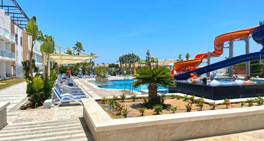 - Основен басейн, отопляем басейн, детски басейн, 2 водни пързалки за възрастни, 2 водни пързалки за деца