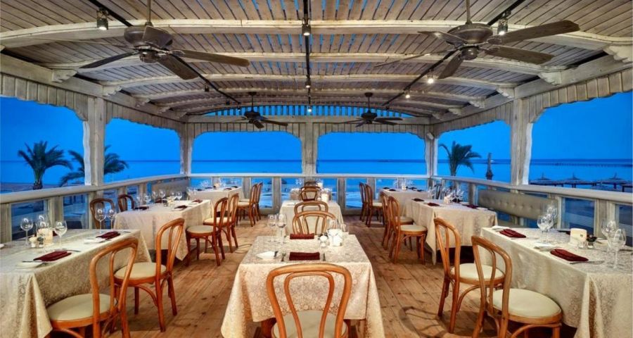 Средиземноморска кухня и италиански декор. Включен е в инклузивната програма и се изисква предварителна резервация.