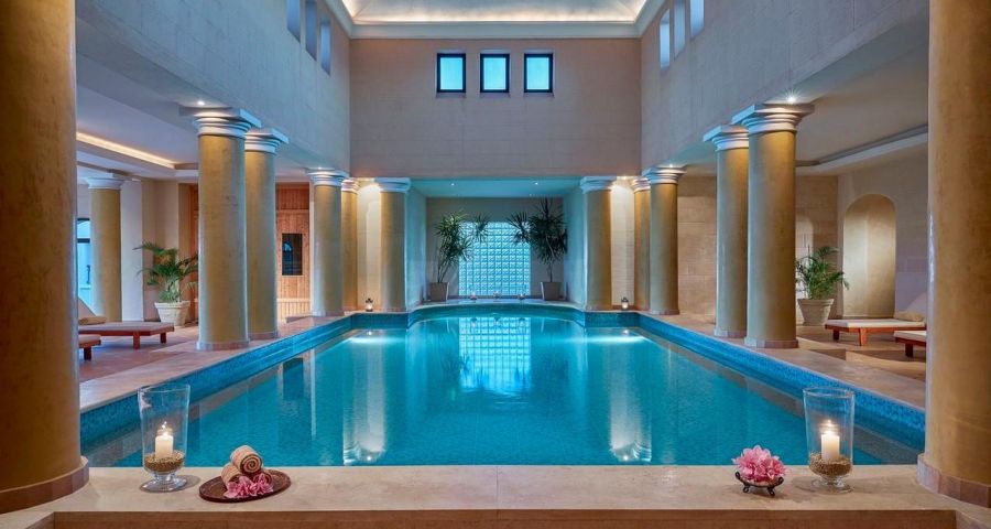 Басейнът към хотела е оформен стилно като числото осем точно в центъра на хотела. Отоплява се в периода ноември-април, а за децата има и отделен басейн. Хотелът разполага и с мини аквапарк с улеи, пързалки и спирала. Има 5 големи пързалки за големи и 1 пързалка за деца.