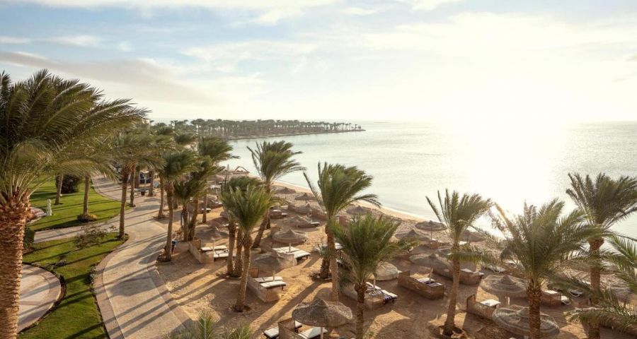 Хотелът е луксозен комплекс с ориенталска архитектура и просторна градина. Разполага с основна сграда и няколко допълнителни крила, предлагащи разнообразие от удобства. Подходящ е както за семейства с деца, така и за двойки, търсещи спокойна почивка.  Собствен, с коралов риф. Чадъри, шезлонги и матраци на плажа и при басейна - безплатно. Плажни кърпи – безплатно.