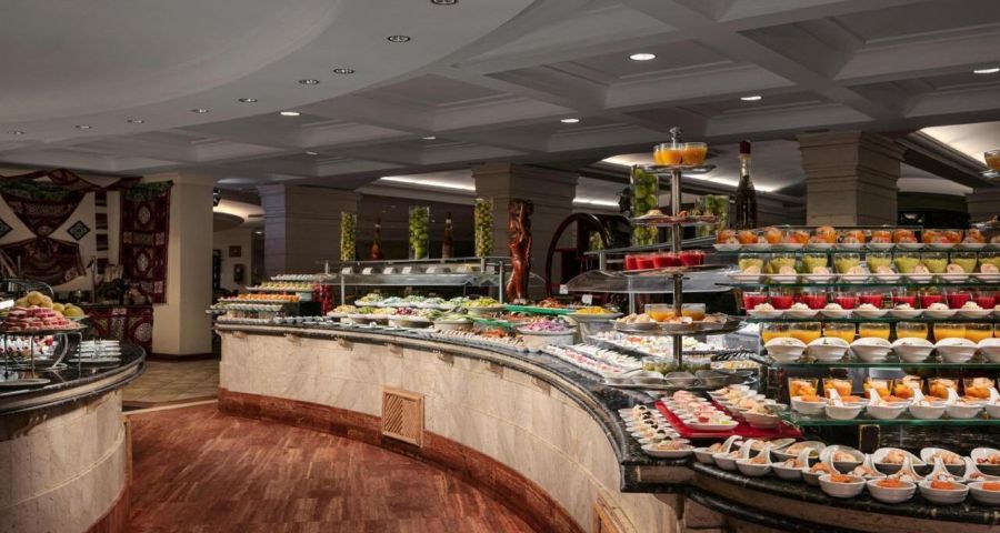 Основният ресторант предлага закуска, обяд и вечеря на блок маса с интернационална кухня. Хотелът разполага и с няколко а ла карт ресторанта – гръцки, италиански, азиатски и ориенталски. Предварителна резервация е необходима за а ла карт ресторантите. Баровете в комплекса предлагат богато разнообразие от напитки и леки закуски през деня.
