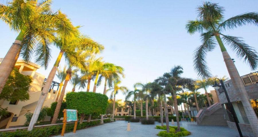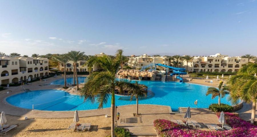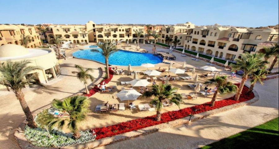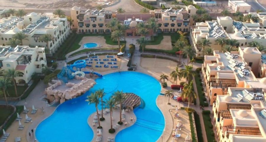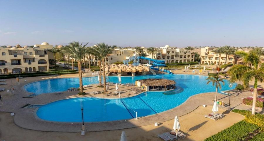 Stella Gardens Resort and Spa се намира в живописния и спокоен район Макади Бей, на около 35 км южно от международното летище в Хургада и на около 40 км от центъра на града. Хотелът е част от големия комплекс Stella Di Mare и предлага достъп до частен плаж чрез вътрешен път или шатъл. Разположението му осигурява тишина, спокойствие и отлична възможност за пълноценна почивка в близост до морето и рифовете на Червено море.