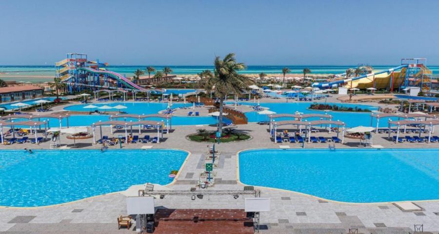 Sunrise Alora Aqua Park е модерен петзвезден курорт, част от популярната египетска верига Sunrise Resorts & Cruises. Съчетава съвременна визия, активна атмосфера и разнообразни възможности за забавление. Разполага с голям аквапарк с множество пързалки за деца и възрастни, просторни басейни, анимация и зони за релакс. Подходящ е за семейства, двойки и групи, които търсят комбинация от комфорт и атракции.