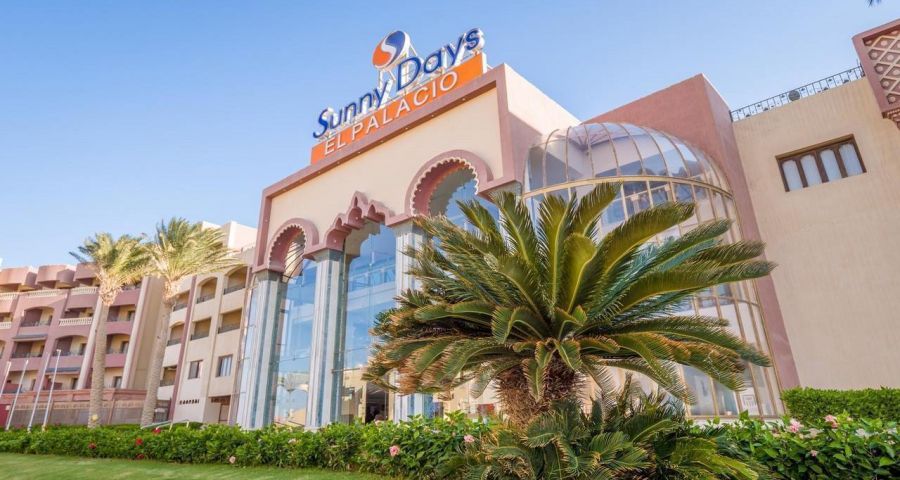 Sunny Days El Palacio предлага автентична ориенталска архитектура, просторна територия, частен плаж, лагуна и мост, водещ към малък остров. Хотелът разполага с открити басейни, аквапарк зона за деца, основен ресторант, тематични ресторанти, барове, амфитеатър, СПА център и търговски обекти.