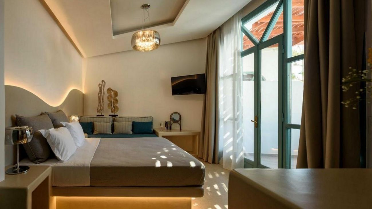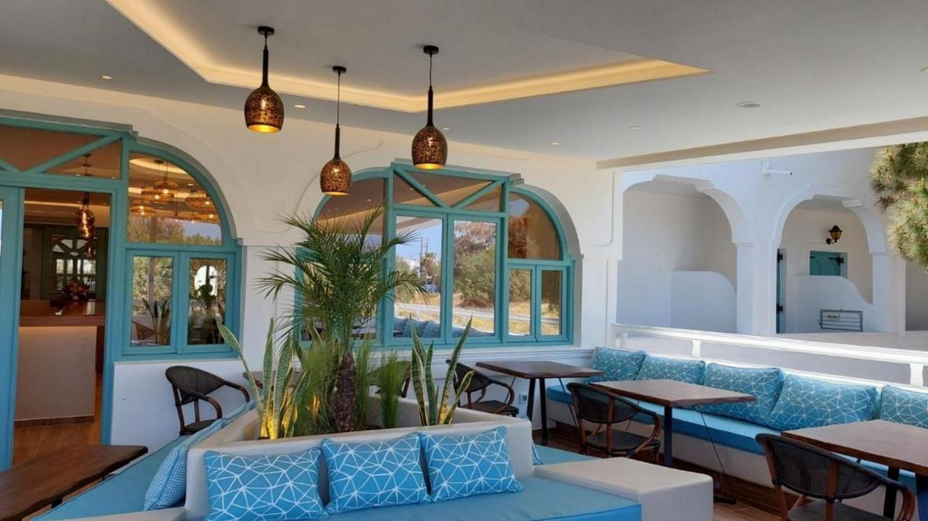 На 50 м от хотела може да намерите плаж, който има гладък черен пясък и е награден със син флаг. На същото разстояние можете да се насладите на живописни таверни или на космополитни нощни клубове с гледка към безкрайното море.