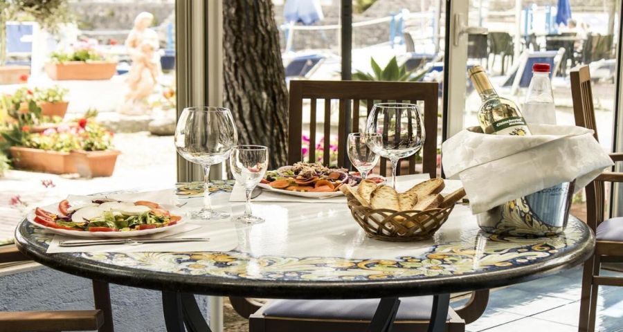 Ресторантът на хотела е отворен за обяд и предлага вкусни образци на сицилианската кухня.