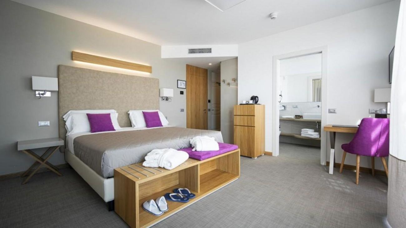 Разположен на 150 метра от Адриатическо море, хотелът предлага Турска баня, гореща вана ,сауна и още много страхотни удобства .Той е удобно разположен, само на няколко метра от крайбрежната алея, пълна с най-модерните магазини, барове и ресторанти в града. В обсега на кратка разходка или още по-кратко пътуване с някой от безплатните велосипеди на хотела ще откриете разнообразие от атракции. Наблизо има тенис кортове, писти за конна езда, голф игрище и аквапарк Aqualand.