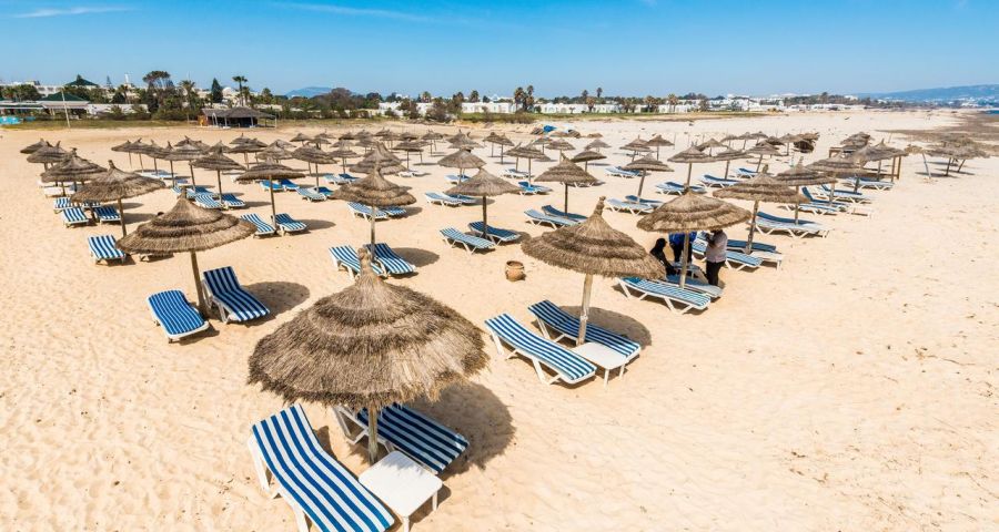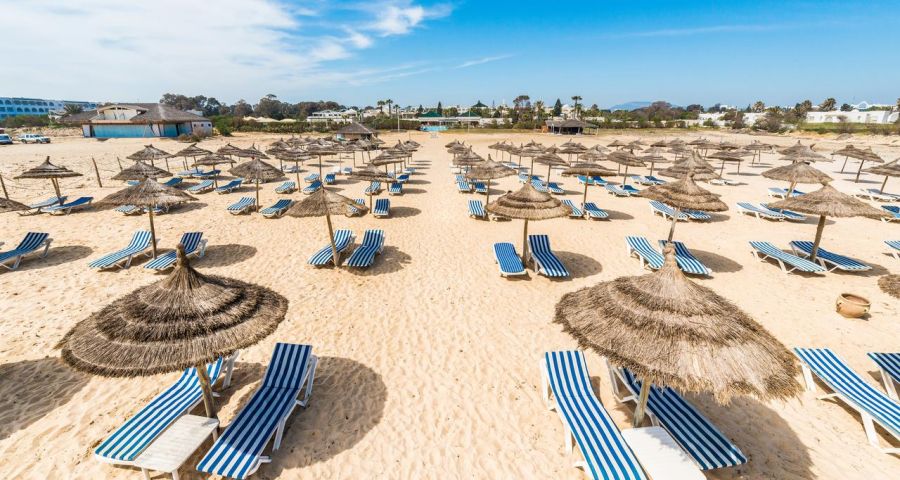 Широк, собствен, леко наклонен пясъчен плаж, първа брегова линия. Чадъри, шезлонги и матраци на плажа и на басейна - безплатно. Плажни кърпи - безплатно, срещу депозит.