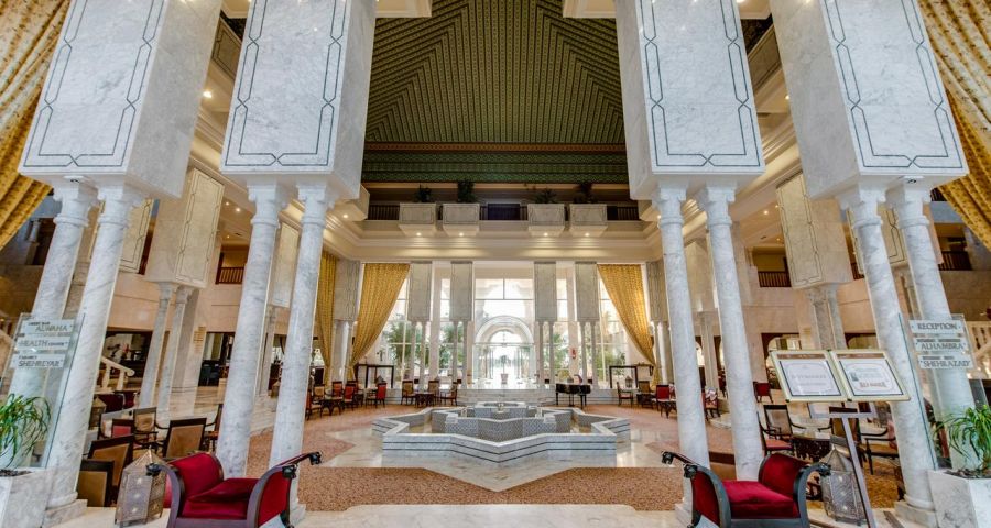 Основен ресторант Shehrazad, а ла карт ресторант Alhambra (платен, едно безплатно посещение на престой, след предварителна резервация), а ла карт Capri с италианска кухня (платен, едно безплатно посещение на престой, след предварителна резервация), бар басейн Al Khayem (през висок сезон), лоби бар Al Waha, снек ресторант Murjana, мавританско кафене Ali Baba (срещу заплащане), 3 открити басейна, 1 закрит отопляем басейн, 2 тенис корта, лека анимация, денонощна рецепция, СПА център, обмяна на валута, 2 конферентни зали.