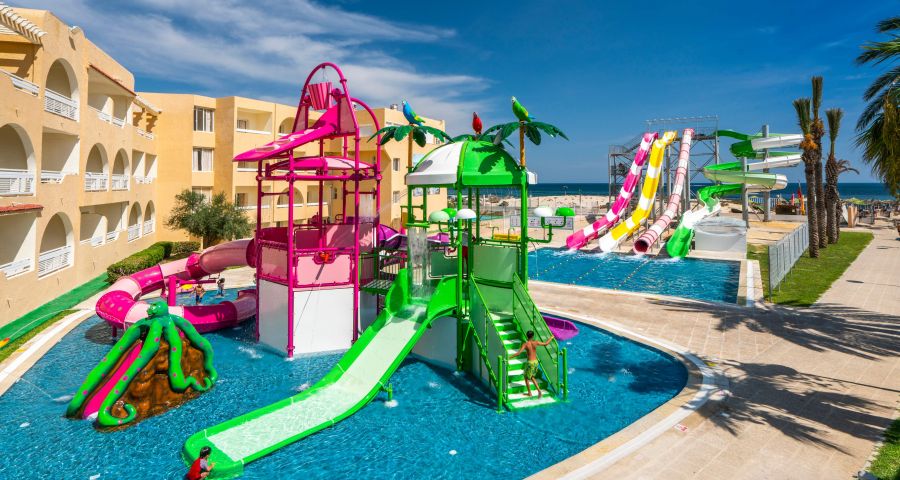 За децата: детски басейн с мини пързалки, втори детски басейн, мини клуб (4-12 год), детска площадка, детски столове в ресторантите, бебешка кошара (по заявка, при наличност).