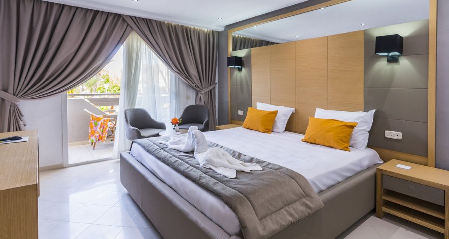 Хотелът разполага с общо 308 стаи, разположени в триетажни сгради, като основната сграда разполага с два асансьора - Standard Room (29 кв.м), Sea View Room (29 кв.м), Superior Room Garden View (29 кв.м), Connecting Room (две стаи със свързана врата).