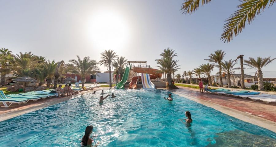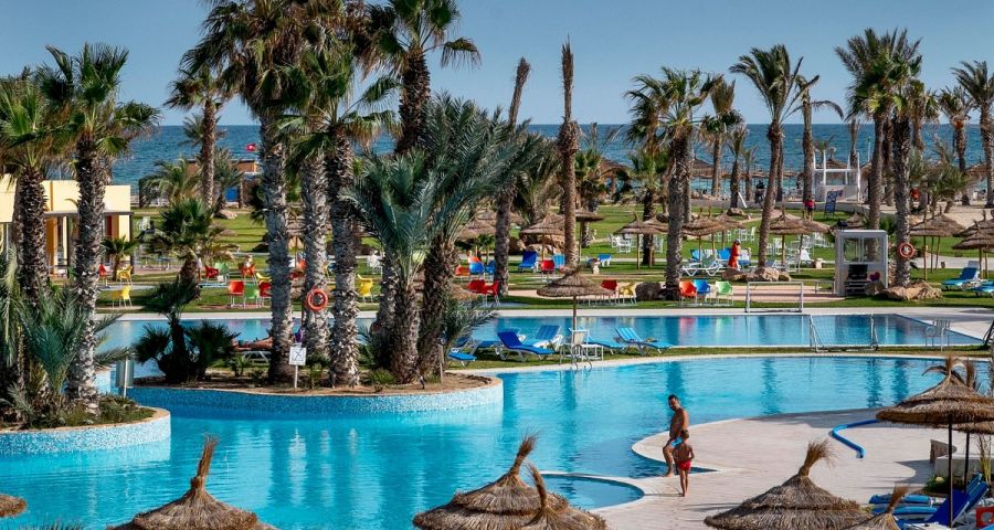 Основен ресторант, 2 а-ла-карт ресторанта (тунизийски и марокански – срещу заплащане/с предварителна резервация, съгласно концепцията на хотела/1 безплатно посещение на 1 от ресторантите при минимум 7 нощувки), 3 бара, мавританско кафене (срещу заплащане), открит басейн, 3 водни пързалки, закрит басейн (от 01.11 до 31.03), закрит басейн с морска вода в Таласо центъра (срещу заплащане), 2 конферентни зали и заседателна зала, магазин, обмяна на валута, денонощна рецепция, Таласо център.
