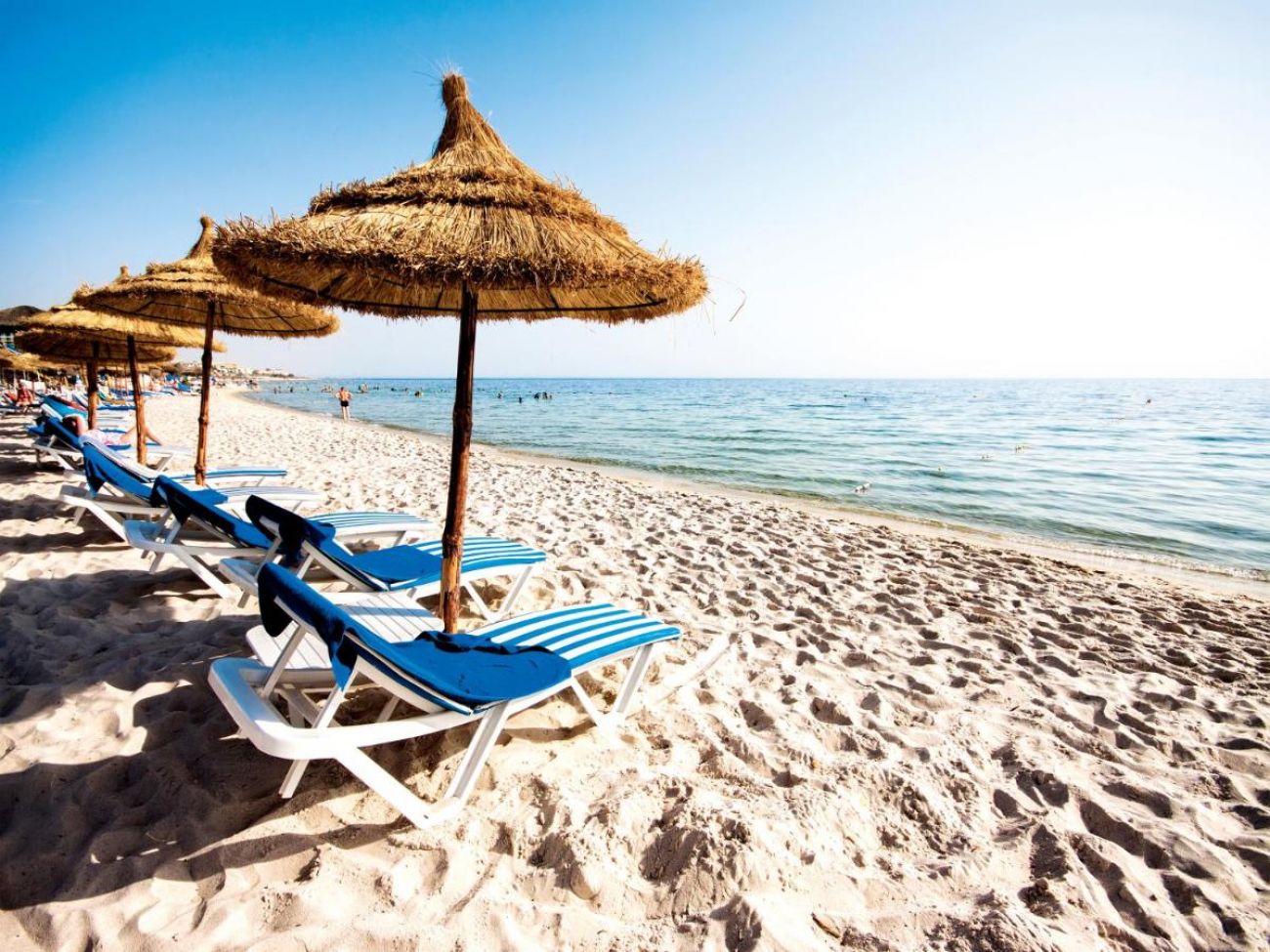 Собствен, пясъчен плаж пред хотела. Чадъри, шезлонги и матраци на плажа и при басейна - безплатно. Плажни хавлии - безплатно, срещу депозит.