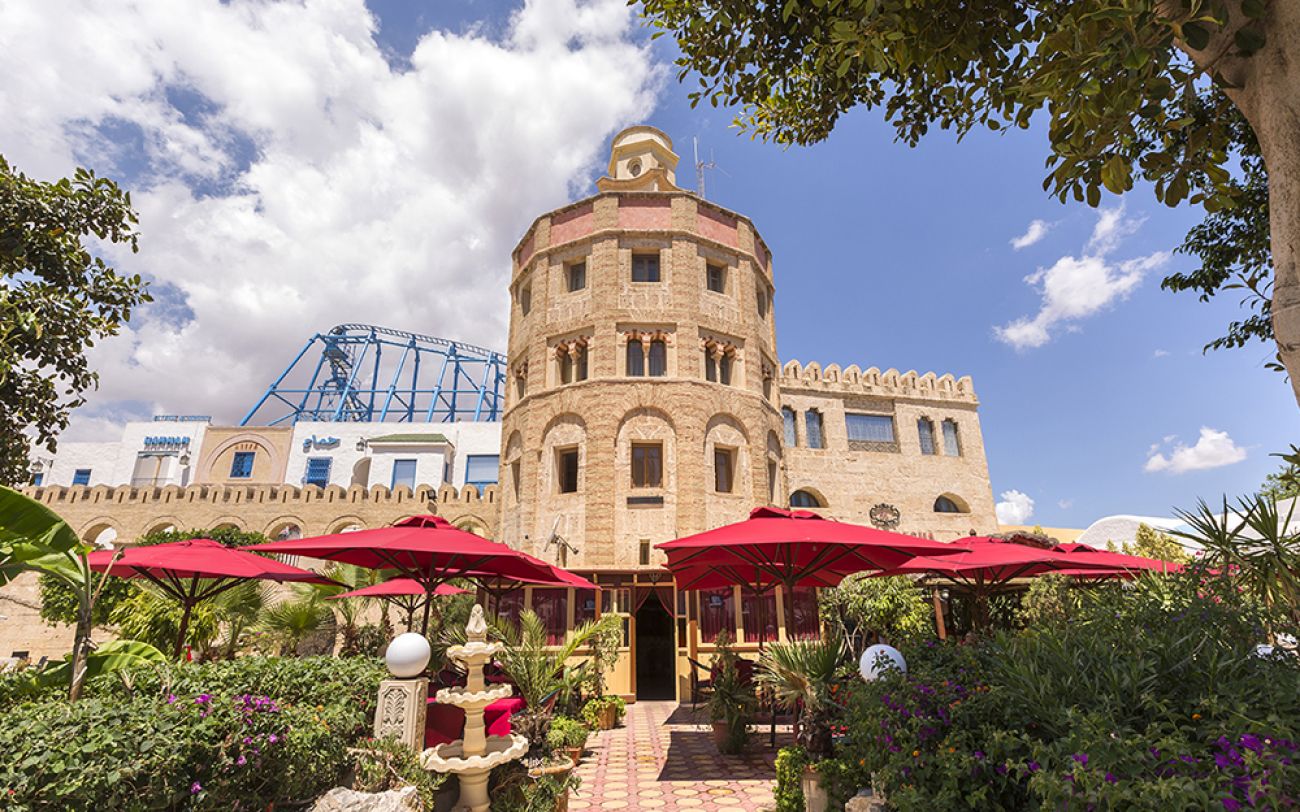 Основен ресторант Le Tunisien, 4 тематични а ла карт ресторанта, всеки от които може да бъде посетен безплатно веднъж по време на престой след предварителна резервация (в хотел Medina Belisaire & Thalasso със средиземноморска кухня, в хотел Medina Diar Lemdina с мароканска кухня, в хотел Medina Solaria & Thalasso с италианска кухня, в ресторант Shaherezade” в хотел Medina Diar Lemdina с тематична вечеря 1001 нощи), снек бар, бар басейн, лоби бар, плажен бар, мавританско кафене (срещу заплащане), 2 открити басейна, 1 закрит басейн (от ноември до април), денонощна рецепция, конгресен център, СПА център, обмяна на валута, анимация.
