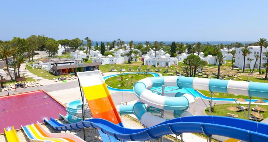 Основен ресторант с детски бюфет, снак бар Express, а ла карт ресторант със средиземноморска кухня (платен, едно безплатно помещение на престой, след предварителна заявка), а ла карт ресторант с тунизийска храна (платен, едно безплатно помещение на престой, след предварителна заявка), а ла карт ресторант с морска храна (платен, едно безплатно помещение на престой, след предварителна заявка), основен бар, бар басейн, плажен бар, аква парк бар, външен басейн, външен басейн за гости над 16+, вътрешен басейн, аква парк включващ басейн с 9 водни пързалки и "мързелива" река, 24 часова рецепция, СПА център, сувенирен магазин, 2 тенис корта.