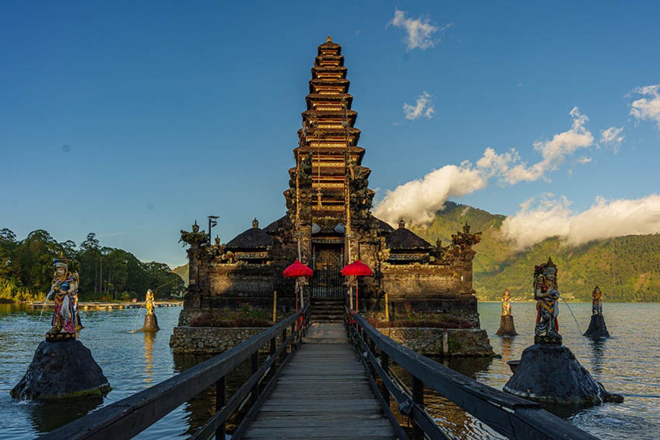 Ще се отправите към планината Бедугул и ще разгледате ез. Бератан, което всъщност е кратер, пълен с прясна вода. Ще посетите храма Pura Ulun Danu Beratan, разположен на 5 м от брега на езерото (включено в цената). Ще продължите през планинския район, където ще имате чудесна възможност да направите хубави снимки на какаови или кафе плантации по пътя към водопад Gitgit. По северния бряг на Бали ще пристигнете в Буда Вихара, будистки манастир и център за медитация, а също така ще спрете на горещите извори в Банджар (включено в цената).