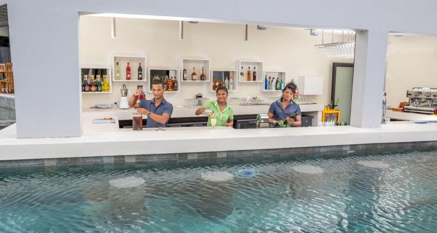 Ресторантите в хотела предлагат микс от европейски и маврицийски вкусове, но и познати на гостите ястия, с което са перфектният избор за закуска, обяд и вечеря. На територията на хотела е разположен и бар до басейна, който предлага освежаващи напитки и вкусни снаксове целодневно. Център за водни спортове (срещу заплащане).