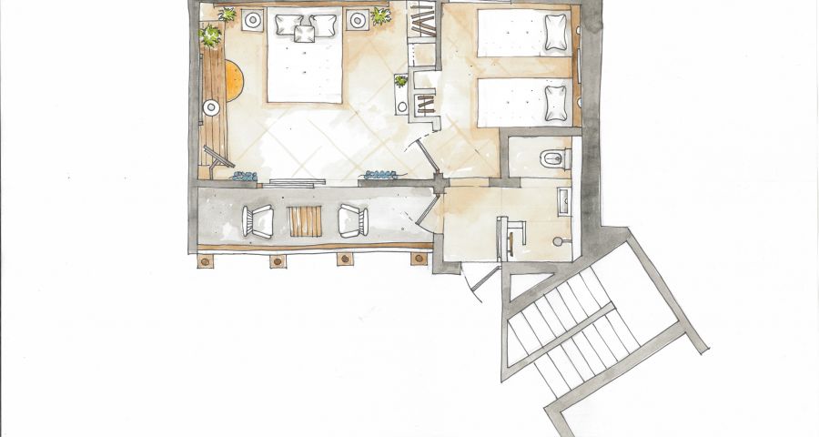 Хотелът разполага с общо 50 стаи, от които 32 Standard room (24 м2), 15 Family room (2 спални, 1 баня - 33 м2). Всички стаи са оборудвани с климатик, телевизор, телефон, баня с душ, сешоар, сет за кафе/чай, мини-бар, сейф. Почистване на стаите и смяна на кърпите - всеки ден, смяна на спалното бельо - 2 пъти седмично. Светли и модерни стаи със свежи оранжеви нюанси, с минималистичен дизайн, предлагащи комфортен престой.