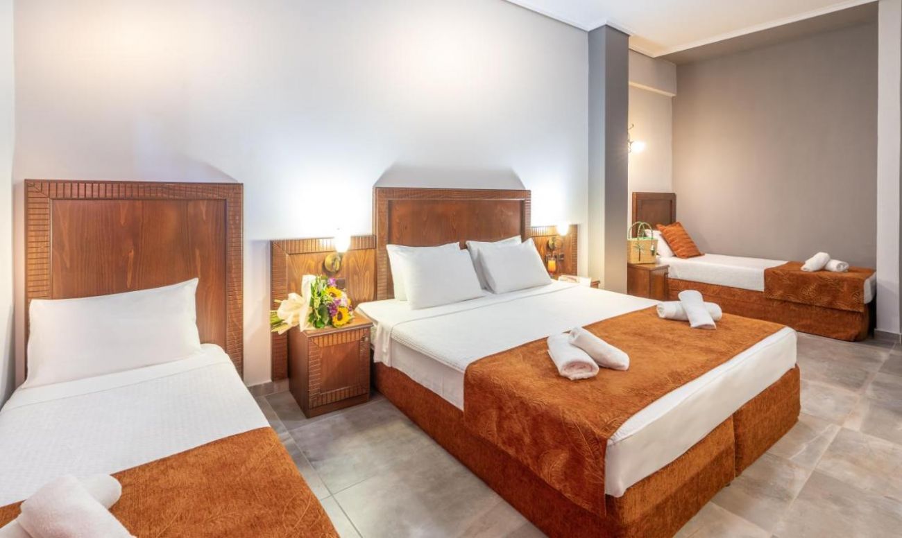 Двойните стаи с изглед към града се намират на 1-ви и 2-ри етаж на хотела и имат изглед към Паралия Катерини. Те са комфортни стаи с красива декорация и балкон с градински мебели. (24 m 2 или 30 m 2)