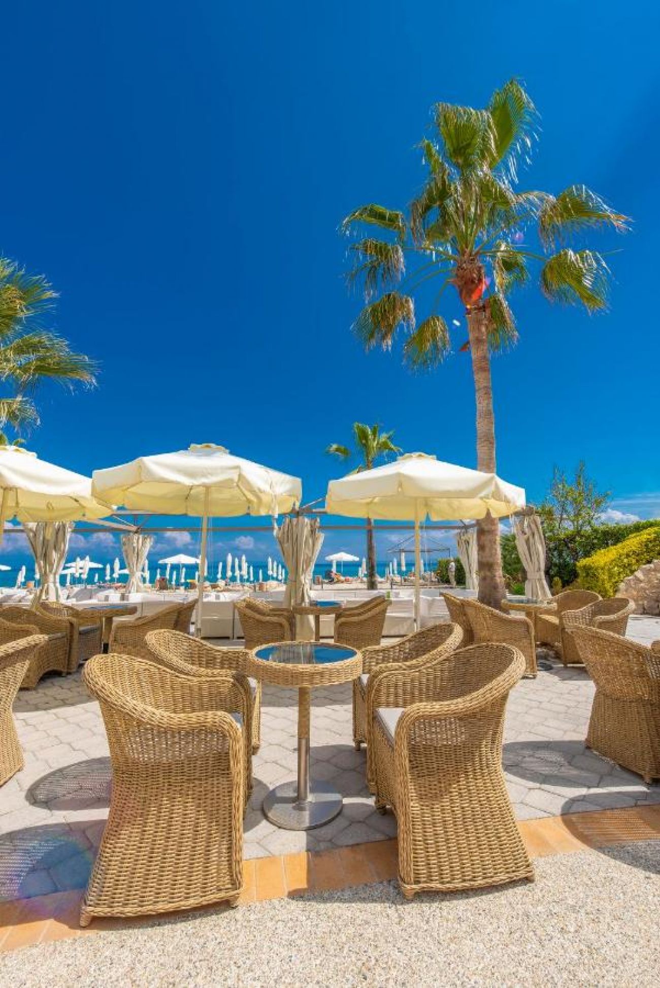 луксозни, нови мебели, модерен дизайн, индивидуален климатик/отопление, телефон, балкон, плазмен телевизор със сателит, сешоар, мини бар, сейф (срещу заплащане), луксозна баня с вана, огледало за грим, рум сървис. Двойни стаи: 24 – 27 кв. м., Стаи супериор: 27 – 30 кв. м., Семейни стаи: 35 – 37 кв. м., Апартамент: 44 кв. м., Делукс апартамент: 60 кв. м. Хотелът не предлага фронтален изглед към морето. То се вижда само странично и частично от част от помещенията, но това в никакъв случай не прави хотела по-малко прекрасен. Изгледа към градината също е по-скоро към съседните сгради, тъй като хотела е градски тип и е разположен на малка територия между други хотели.